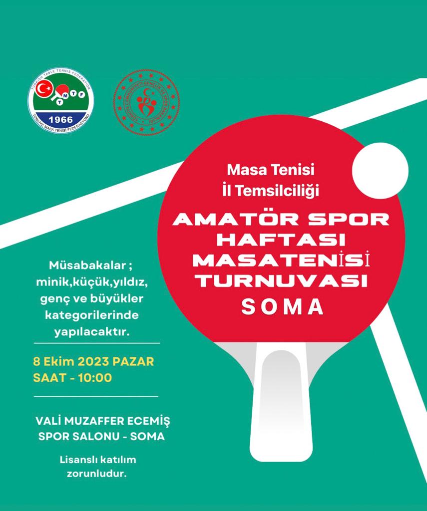 AMATÖR SPOR HAFTASI MASA TENİSİ TURNUVASI 8 EKİM 2023 TARİHİNDE SOMA DA YAPILACAKTIR...